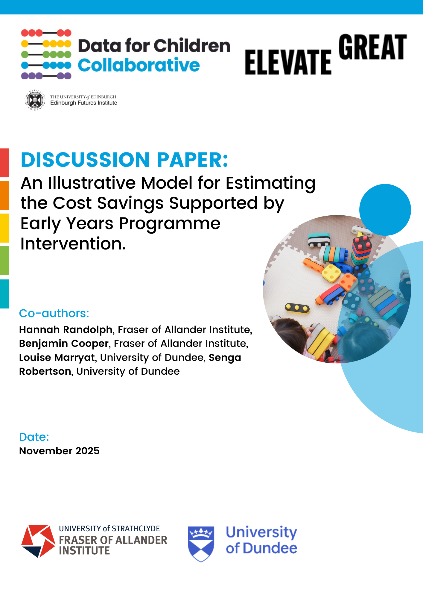 The Data for Children Collaborative partnered with Elevate Great, Aberlour, the Fraser of Allander Institute, and the University of Dundee to evaluate the Aberlour Early Years Outreach Programme. The aim was to test a more flexible, illustrative evaluation approach that could help other third-sector organisations demonstrate both value-for-money and broader societal benefits.