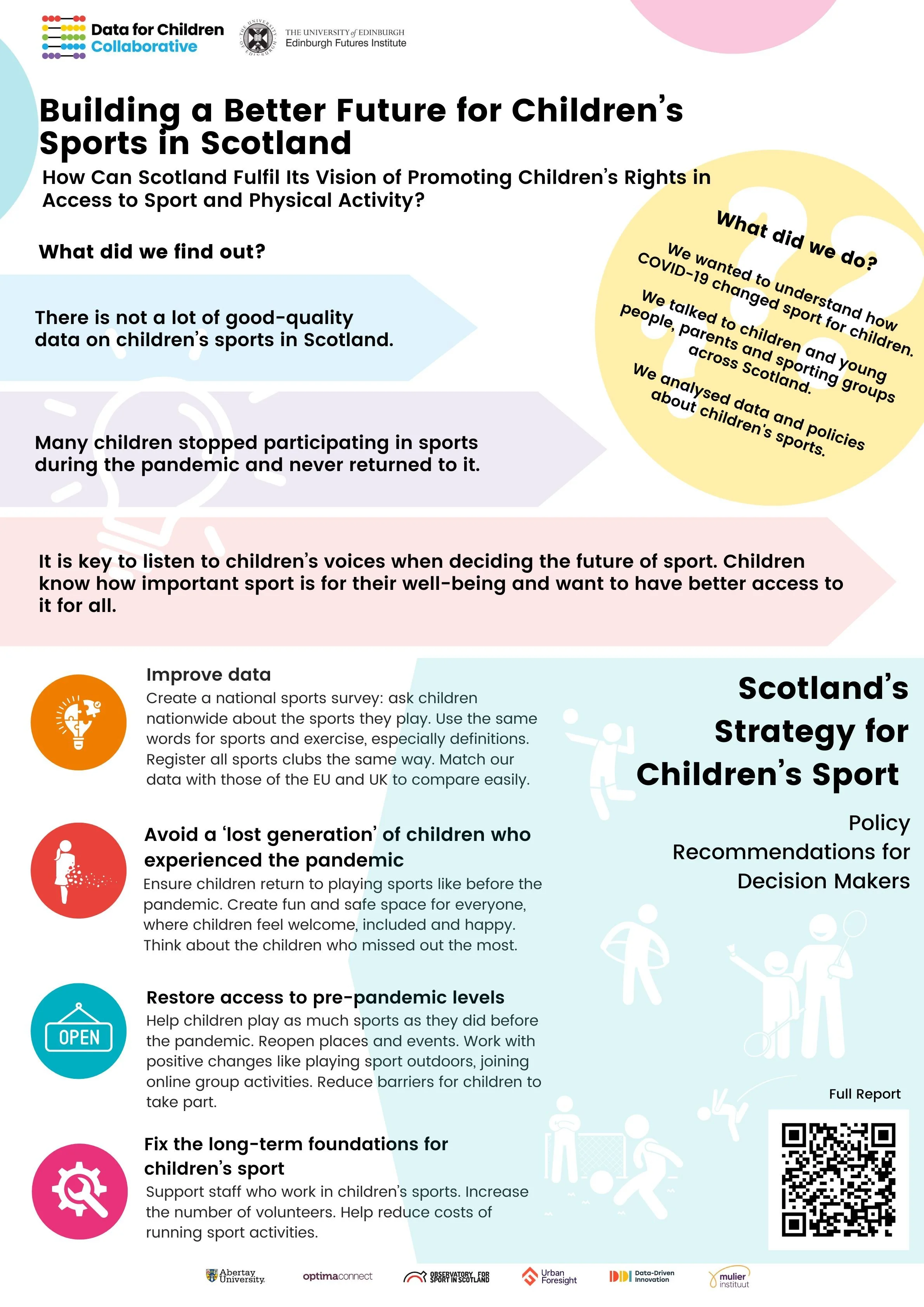 Young people’s voices are a big part of the report. Their input helped shape a set of policy recommendations for Scotland's children’s sports strategy, which aims to improve access and support every child's right to sport.